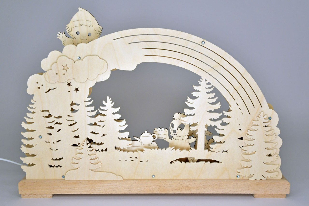 Unser Sandmännchen & Freunde unter dem Regenbogen - kleiner 3D-Schwibbogen