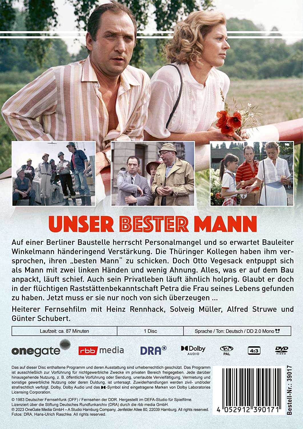 Erleben Sie die humorvolle DDR-Fernsehunterhaltung Unterhaltung mit der DVD "Unser bester Mann" aus dem DDR-TV-Archiv! Inmitten einer Berliner Baustelle, geprägt von Personalmangel, steht Bauleiter Winkelmann vor einer Herausforderung. Verstärkung wird dringend benötigt, und so hofft er auf die Unterstützung des "besten Mannes" aus Thüringen, Otto Vegesack. Doch die Erwartungen werden schnell enttäuscht, als sich Otto als Tollpatsch mit zwei linken Händen und wenig Baugeschick herausstellt.