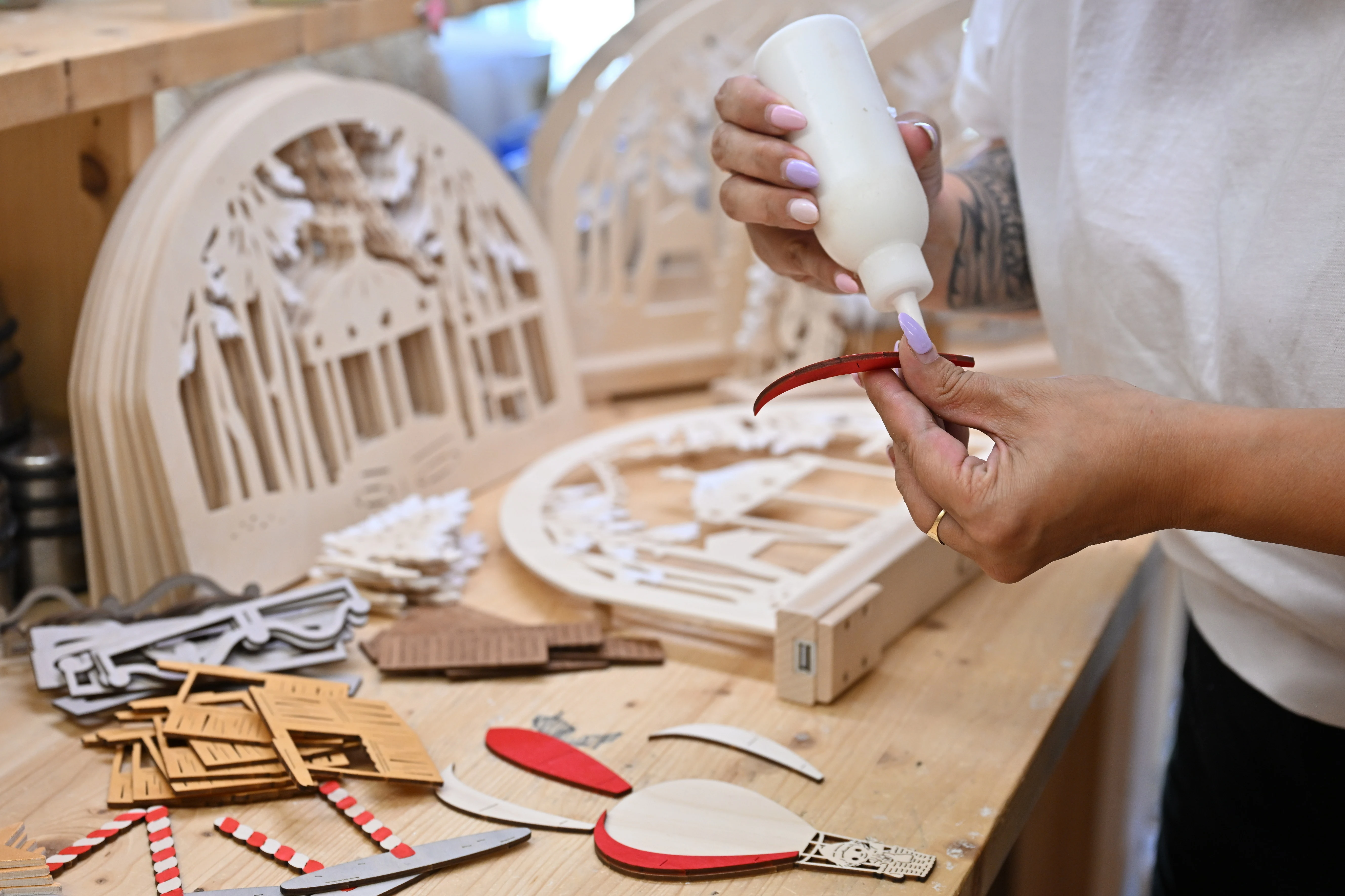 Anlässlich des 65. Jubiläums "Unseres Sandmännchens" ist dieser detailverliebte, handbemalte Schwibbogen mit dem Märchenwald, der Licht und Freude in die Wohnzimmer aller Abendgruß-Fans bringt, entstanden.