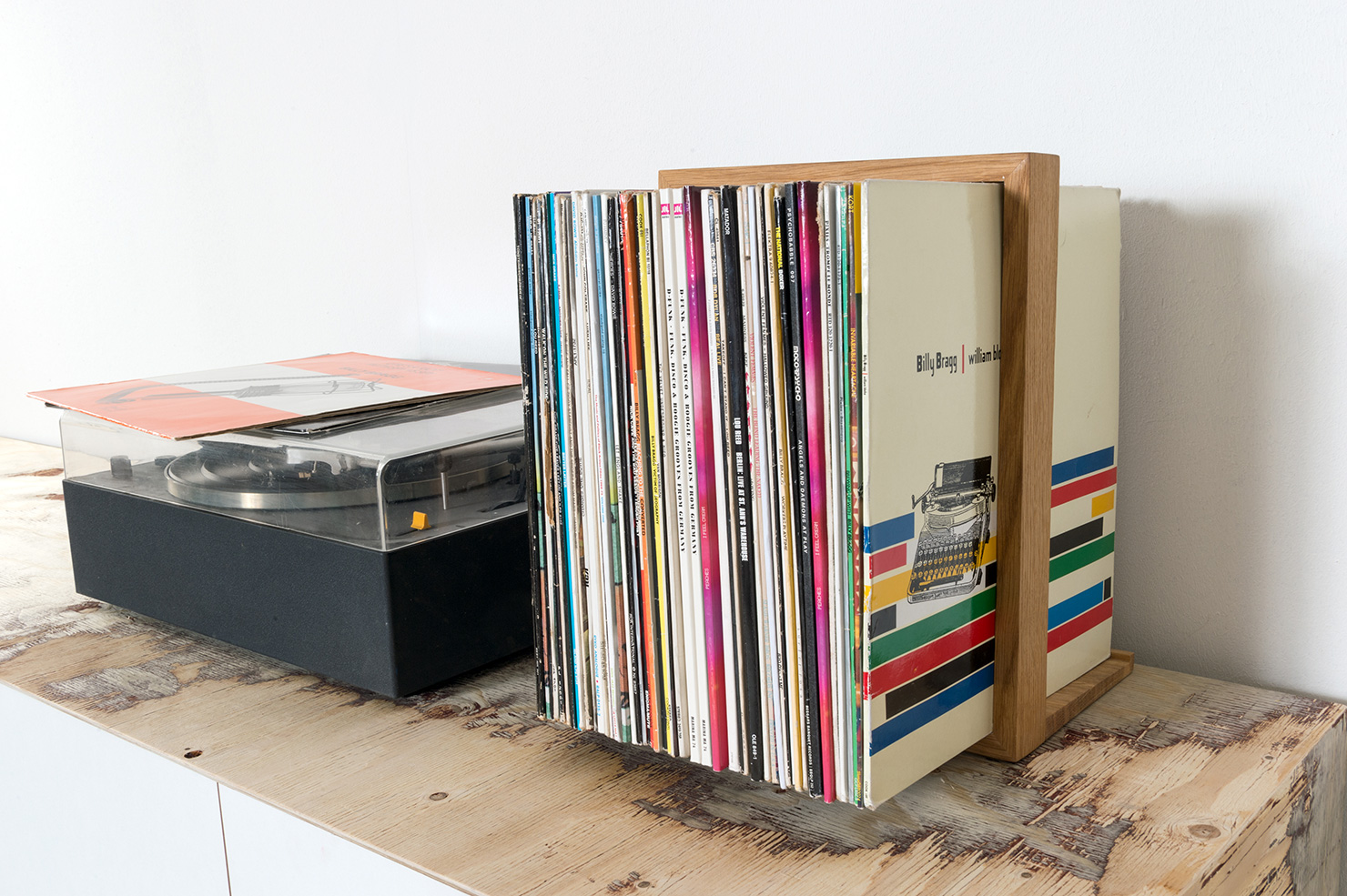b-Seiten Plattenständer – die stilvolle Aufbewahrungslösung für Ihre Vinyl-Schätze. Die große Ausführung bietet Platz für ca. 110 LPs – aufrecht, sortiert und jederzeit griffbereit. Gefertigt aus geölter Eiche, überzeugt er mit hochwertiger Verarbeitung: auf Gehrung gearbeitet und stabil gelagert auf einer massiven Holzplatte.